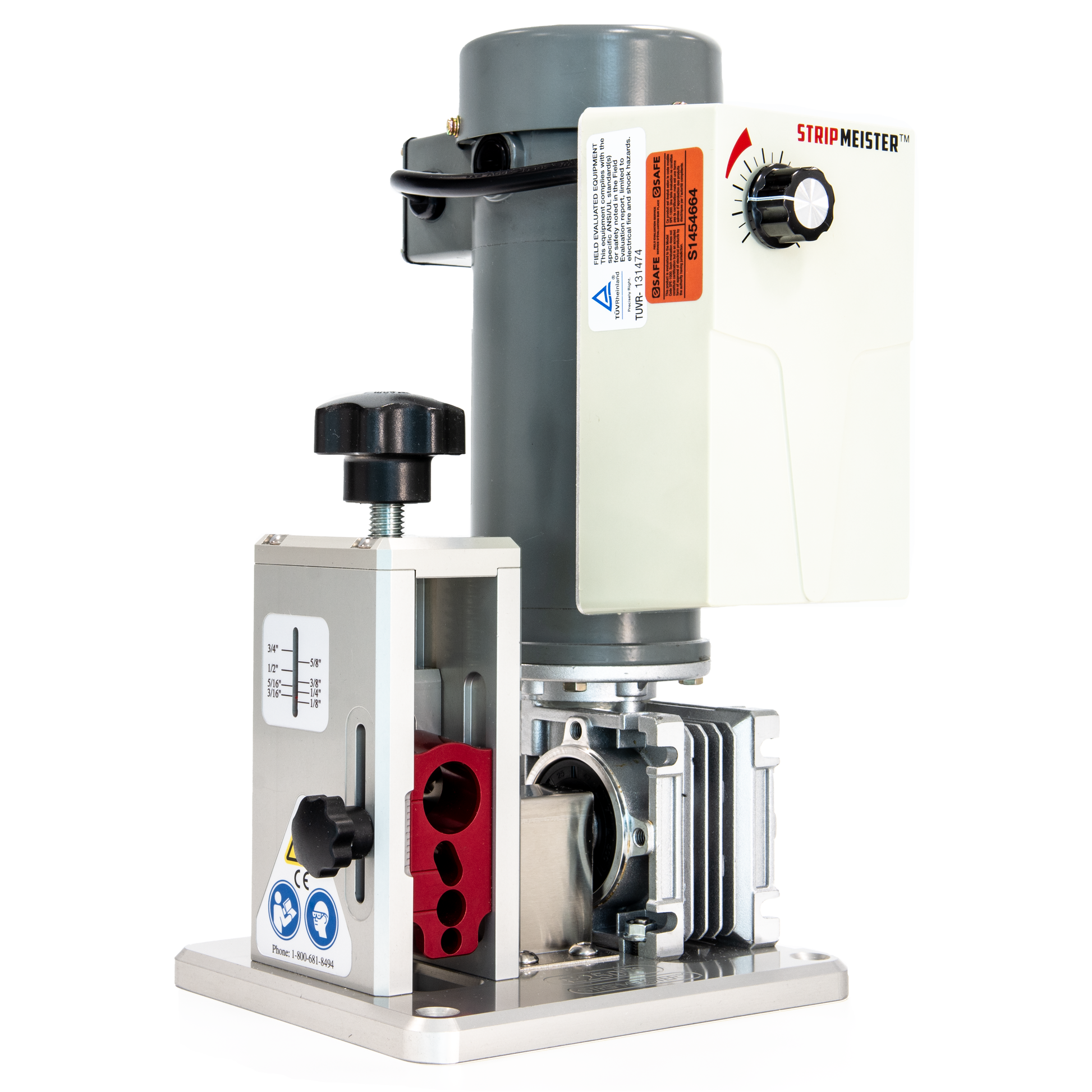 - Motor de CC de 1/4 HP y 90 V con controlador de velocidad (la velocidad ajustable hace que el pelado de cables sea seguro y eficiente)